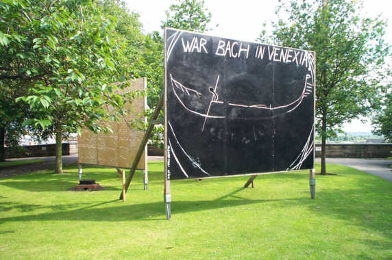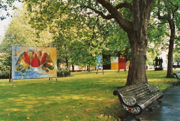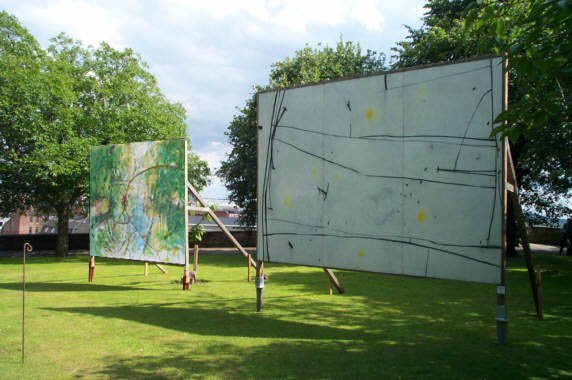 Now we leave the pictures alone. They have to be strong enough to be unaffected by the beautfull castles ground here around. And they have strong enough to be unaffected by the british climate. The paintings are all of a good quality. They play their own game with the surrounding area: With the trees, the squirrels, the wind, the rain an the visitors. You will realize these paintings in many different ways.