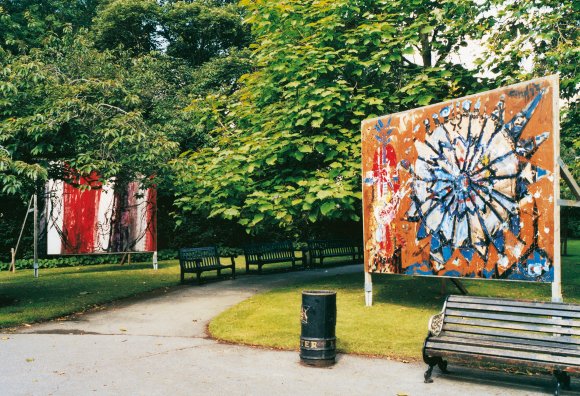 Every painting is 260 X 360 cm, all together 15 paintings. And all of them are originals, painted on a wooden ground. The paintings left their traditional locations like museums or art galleries and meet now the public "on the green meadow".