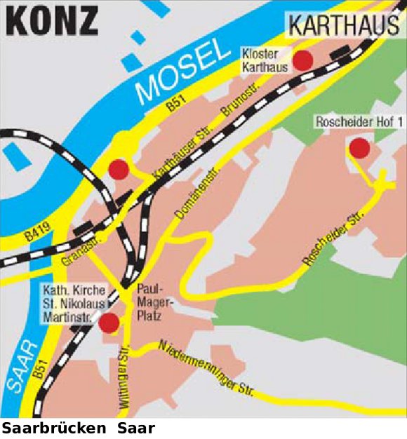 Konz am Zusammenfluss von Saar und Mosel (ca. 8 km von Trier)
