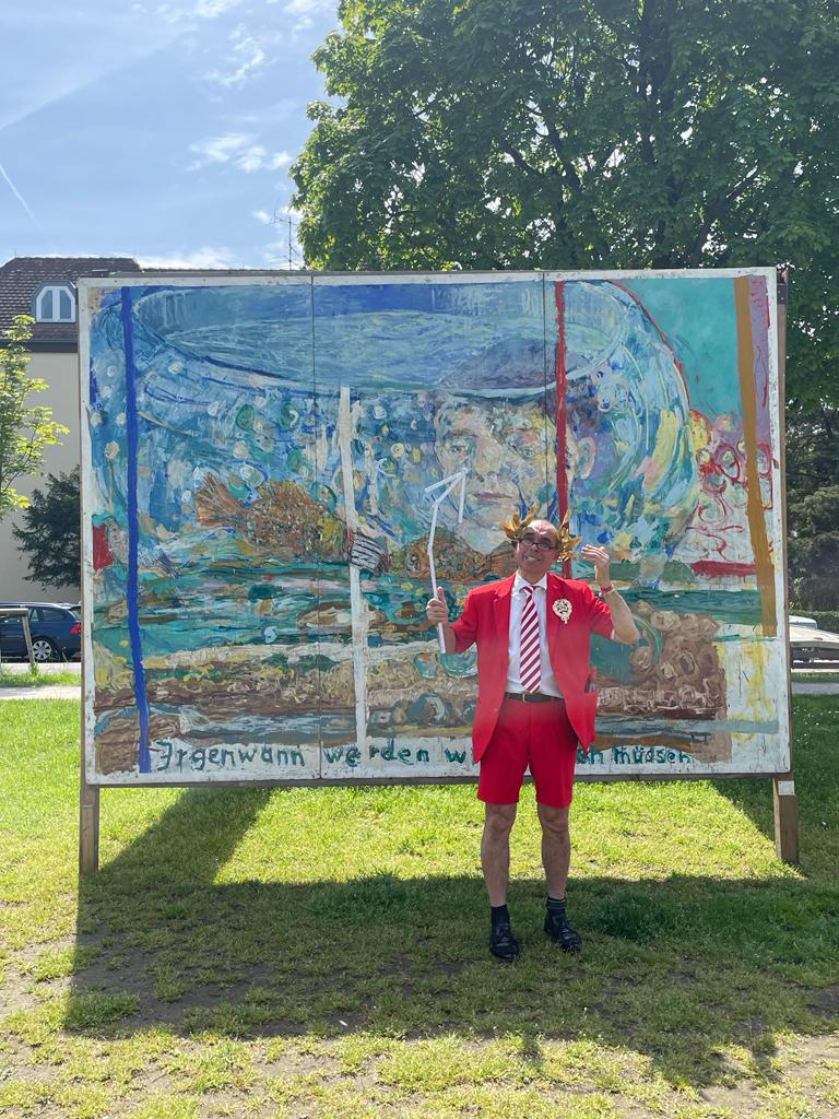 Clown Schorsch interpretiert das Gemälde von Jürgen Wiesner.