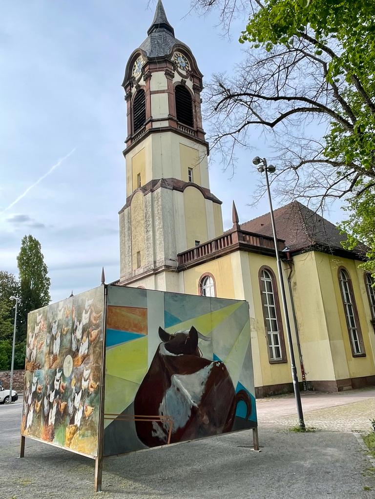 "Bilderwelten" von Angela Junk- Eichhorn an der Lukaskirche, Hagenstraße, Weststadt.