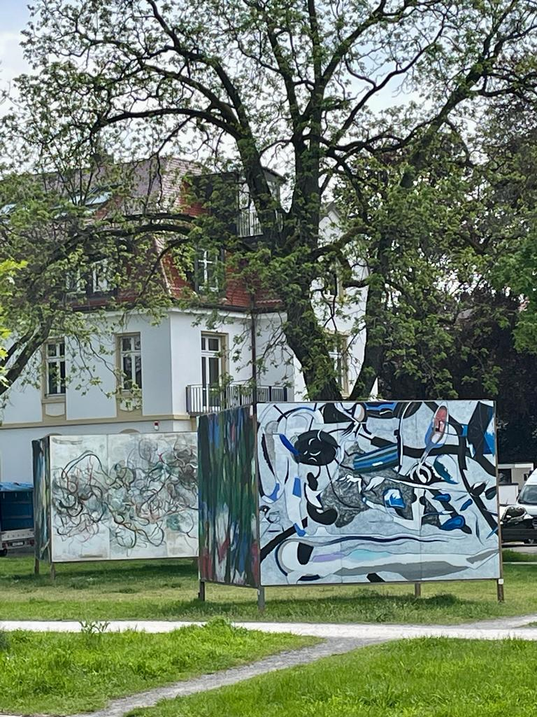 Gemälde von Guido Kuscnierz und Koho Mori- Newton. Hildapromenade vor der Lukaskirche.
