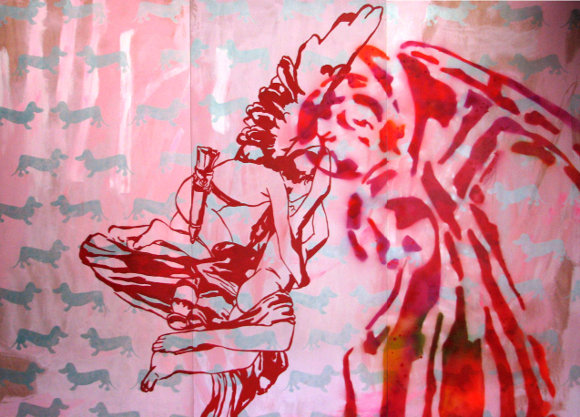 PL L: Amor Angelico", Acrylfarbe und Lackspray auf Holz (zu sehen in Edenkoben und Simonskall)
